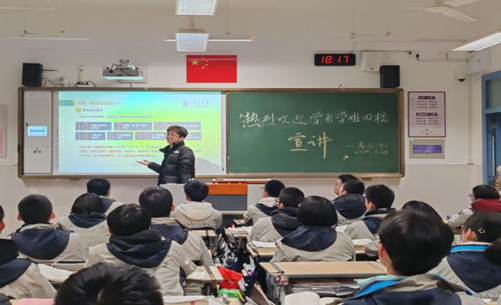 2024年1月26日,“传河海之声,承一中之情”返校宣讲实践团来到江苏省苏州第一中学校,开展线下宣传活动。三位成员提前规划,准备好宣传资料,在有限的时间内,向同学们介绍学校基本信息、优势专业、招生计划。