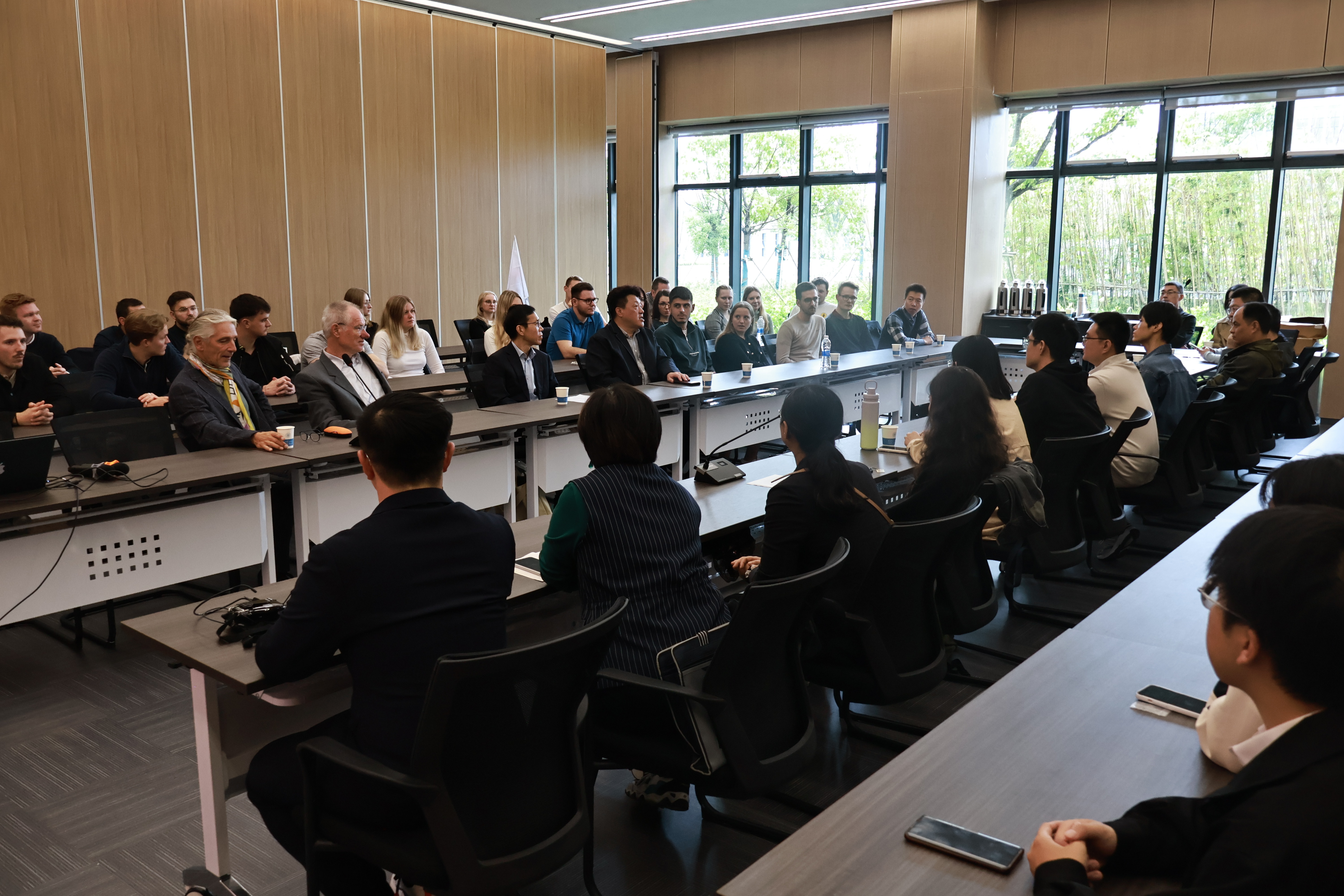 1022日,常州市金坛区商务局、德国斯图加特双元制大学组织来访h视频 。德国斯图加特双元制大学2位教授和25研究生同学与我师生共同度过了充实而又愉快的一天。此次活动中双方享了信息与经验,同时也促进h视频 与属地单位、国际学校的交流与合作