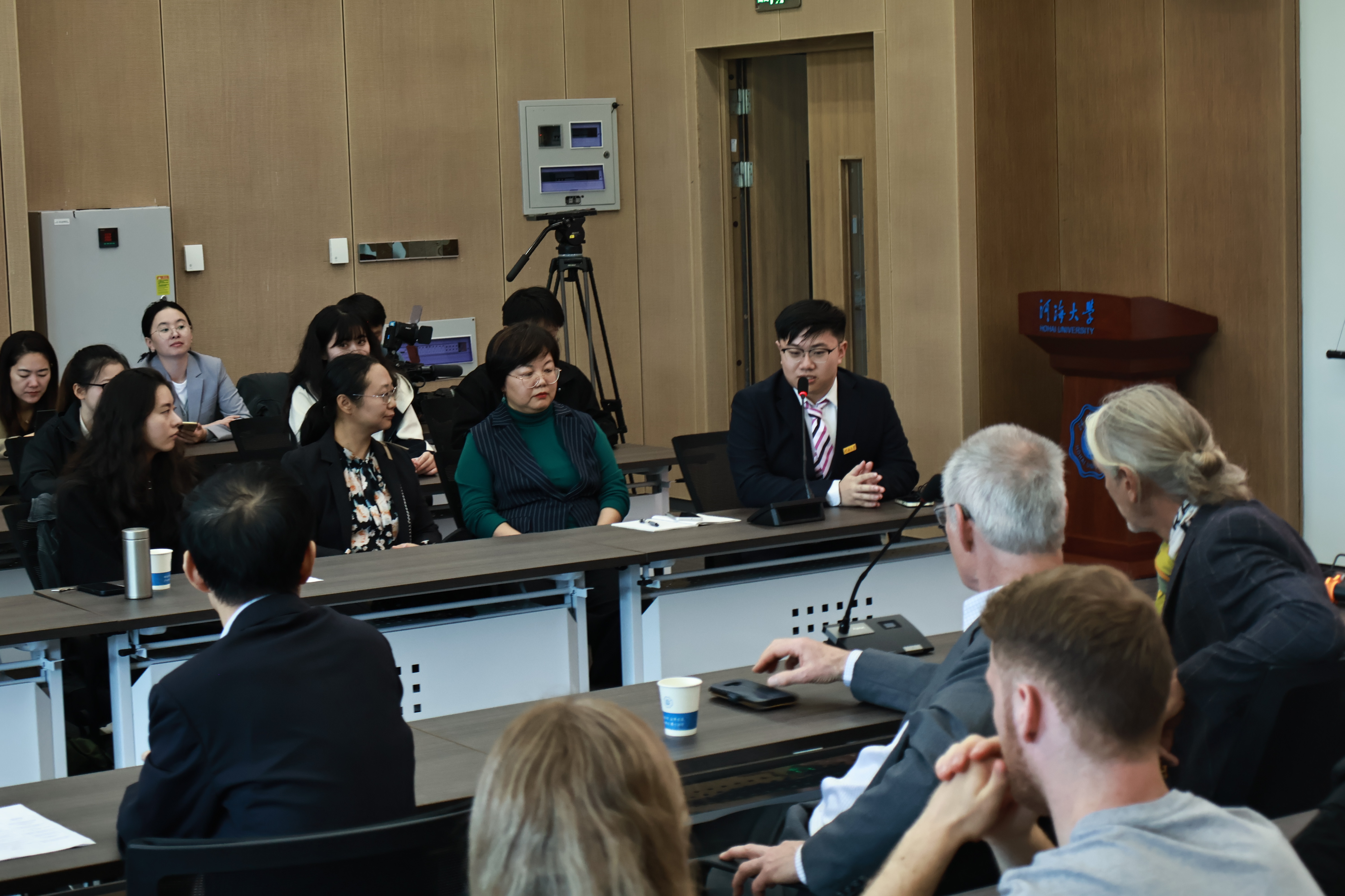 德国斯图加特双元制大学各位师生在h视频 老师、学生代表的陪同下参观了校园和图书馆,重点了解了h视频 的办学情况,学院历史、学科建设、师资力量、专业培养方案等情况。