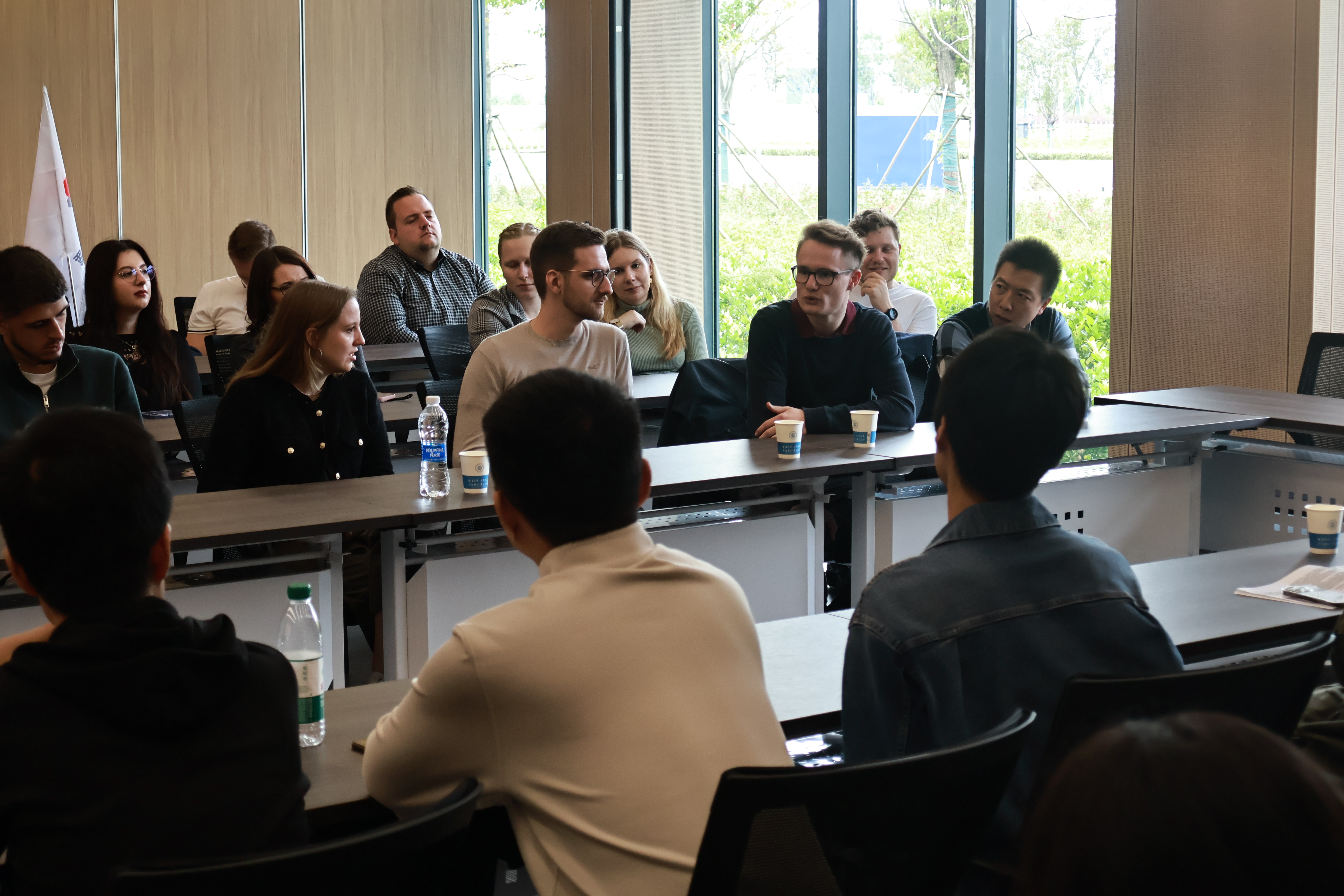 10月22日,常州市金坛区商务局、德国斯图加特双元制大学组织来访h视频 。德国斯图加特双元制大学2位教授和25位研究生同学与我院师生共同度过了充实而又愉快的一天。此次活动中双方分享了信息与经验,同时也促进h视频 与属地单位、国际学校的交流与合作。
