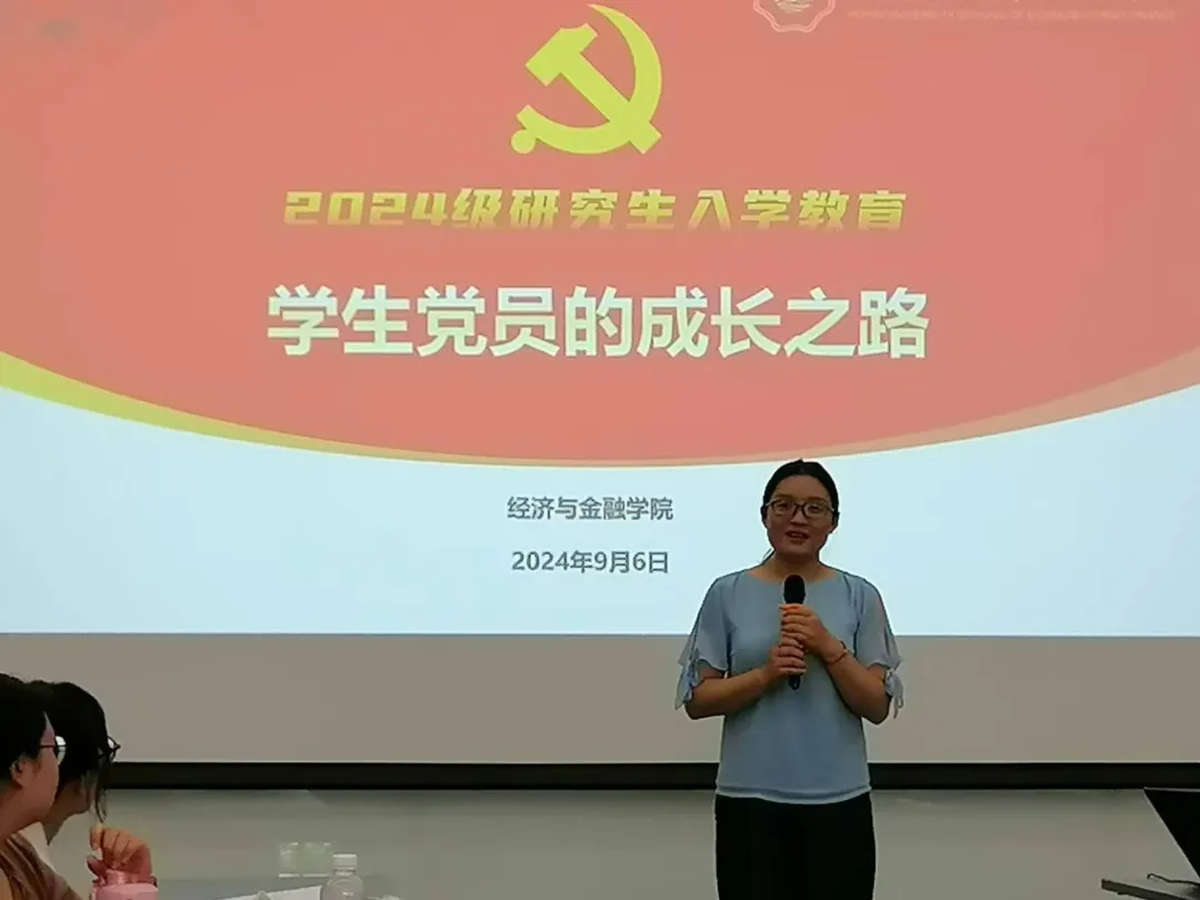 学院团委书记亓文娟老师以“大学生的党员之路”为题,向新生们详细介绍了学院学生党建基本情况、党员的基本素养和要求、党员发展流程等,鼓励同学们积极向党组织靠拢,坚定不移听党话、跟党走,研究生党员要积极发挥先锋模范作用,肩负起党员的责任与担当。